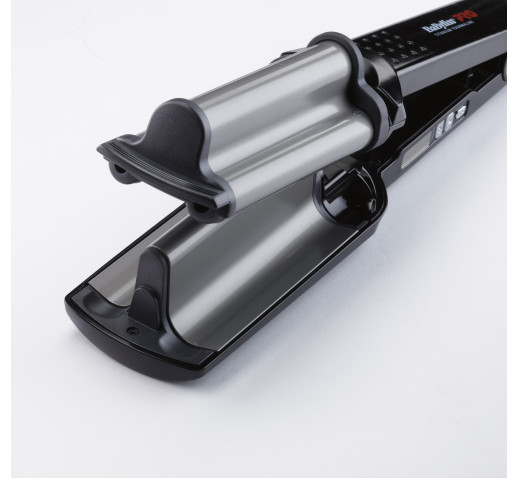 Titano-turmalínová technologie: Turmalínové krystalky obsažené ve vyhřívaném povrchu trojkulmy zabezpečí rovnoměrné rozložení tepla po celém obvodu. Turmalín rovněž při zahřátí uvolňuje přirozené záporné ionty, které eliminují statickou elektřinu, vlasy zanechávají zdravé, hladké a lesklé. Titan dodává deskám nesrovnatelnou trvanlivost a extrémní odolnost vůči vysoké teplotě, poškrábání a chemickým látkám